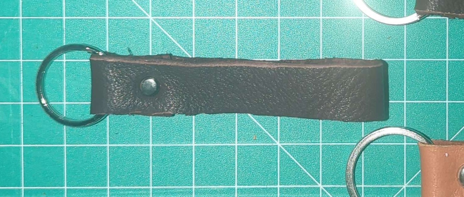 A soft deer hide keychain with a strong keyring and hand-set rivet. This product is handmade, so small variations in leather and appearance is expected.
