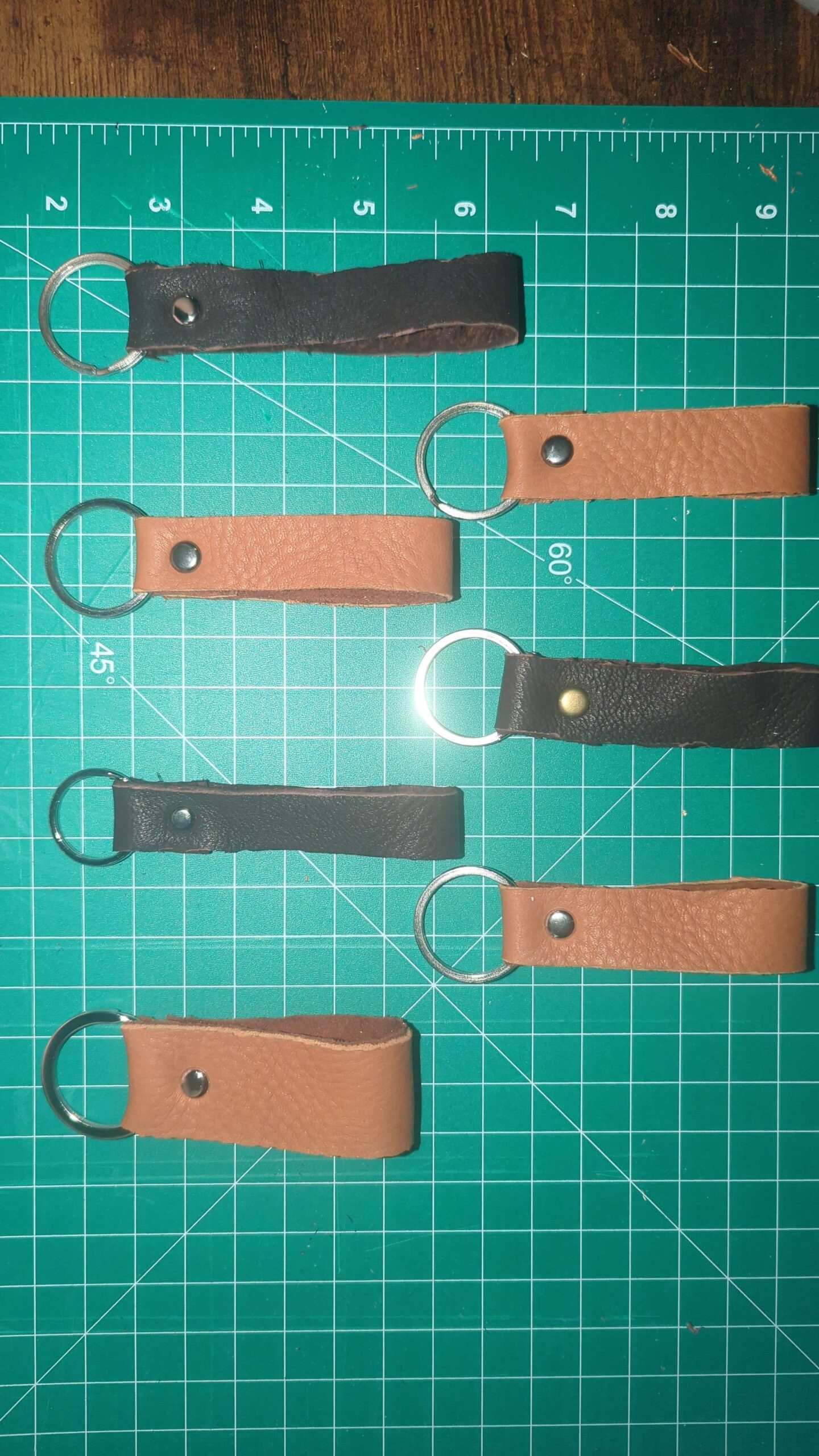 A soft deer hide keychain with a strong keyring and hand-set rivet. This product is handmade, so small variations in leather and appearance is expected.